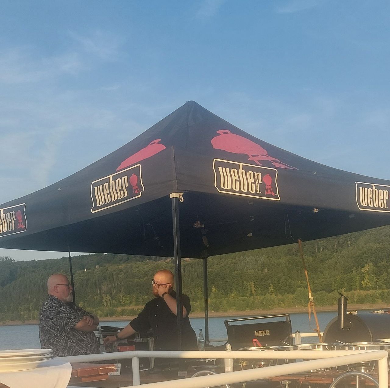 An Bord angekommen, ergatterten wir ganz tolle Plätze am Heck des Schiffes. Dort hatte die „Sauerländer BBCrew“ (ja, die Jungs schreiben sich tatsächlich so) ihren Cateringstand aufgebaut.